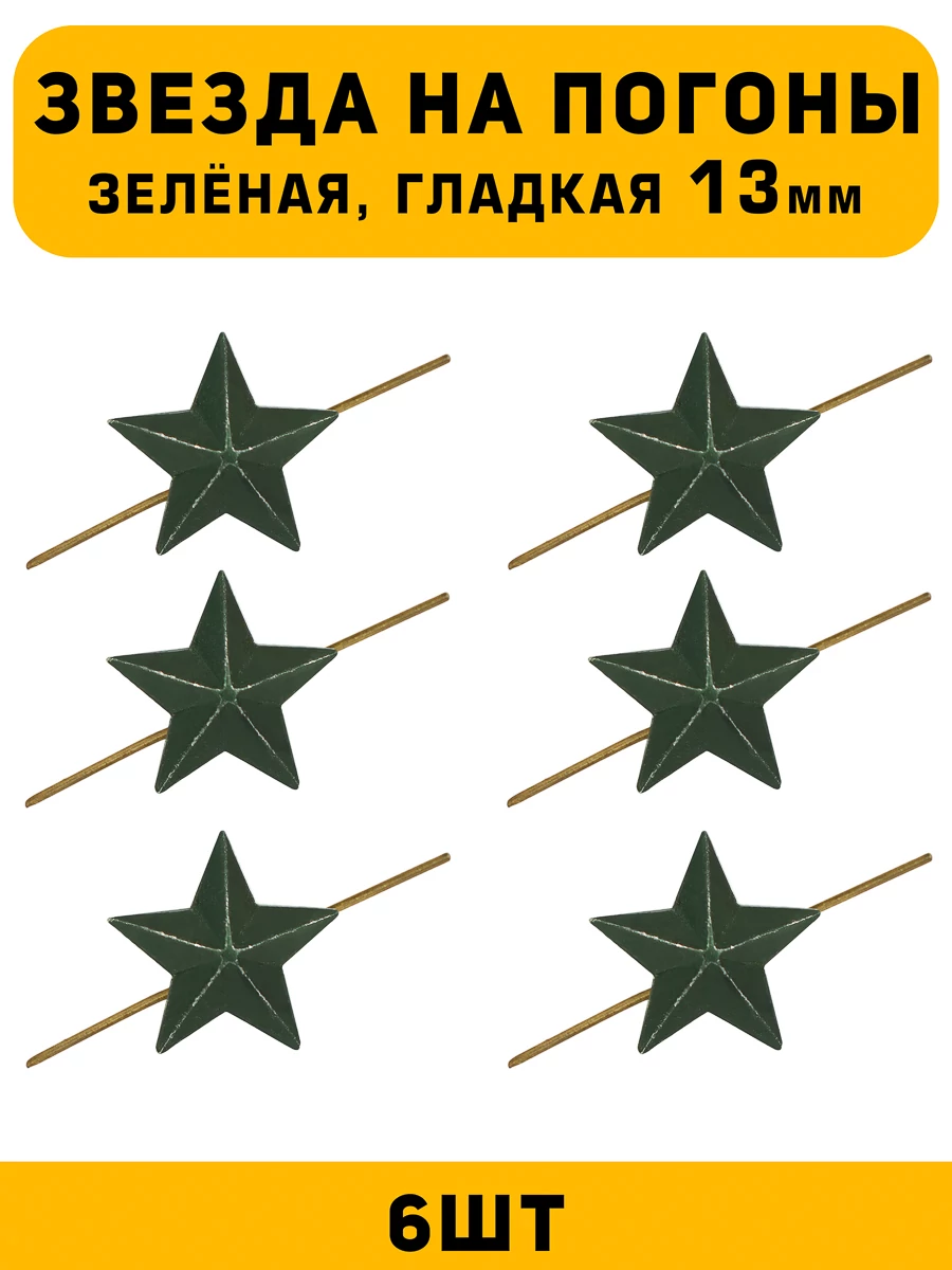 Звезды на погоны 6 шт размером 13 мм, это элемент специальной униформы которые используют для обозначение звания или отличия. Эти звезды, выполненные в зеленом цвете, придают форменной одежде официальный и стильный вид. Независимо от вашего звания — будь то лейтенант, капитан, старший лейтенант или прапорщик — звезда на погоне станет эффектным акцентом.