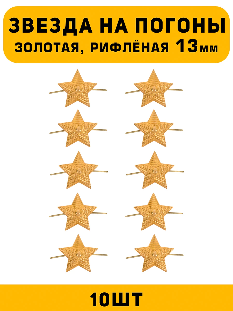 Звезда на погоны 10 шт размером 13 мм это элемент специальной униформы которые используют для обозначение звания или отличия Эти звезды, выполненные в золотом цвете, придают форменной одежде официальный и стильный вид. Независимо от вашего звания — будь то лейтенант, капитан, старший лейтенант или прапорщик — звезда на погоне станет эффектным акцентом.