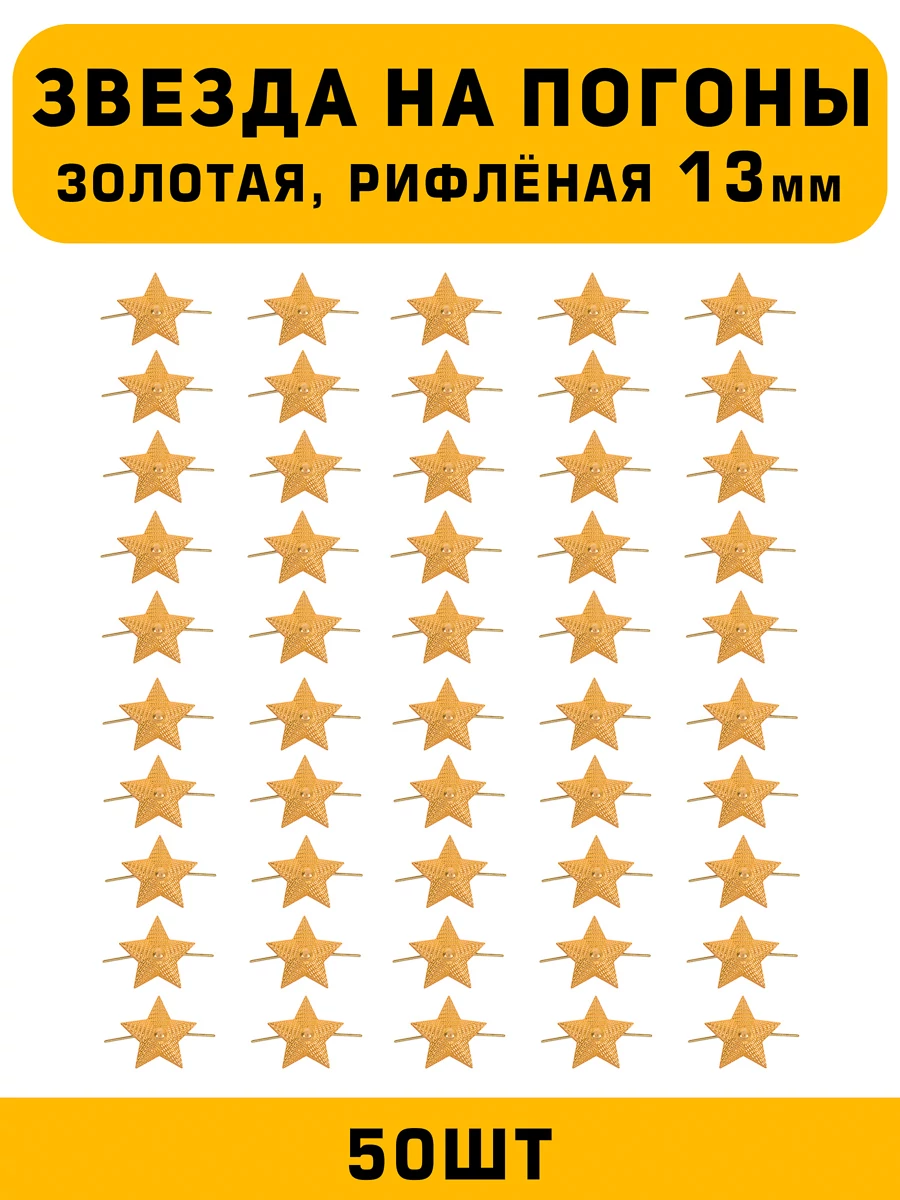 Звезда на погоны 50 шт размером 13 мм, это элемент специальной униформы которые используют для обозначение звания или отличия. Эти звезды, выполненные в золотом цвете, придают форменной одежде официальный и стильный вид. Независимо от вашего звания — будь то лейтенант, капитан, старший лейтенант или прапорщик — звезда на погоне станет эффектным акцентом.