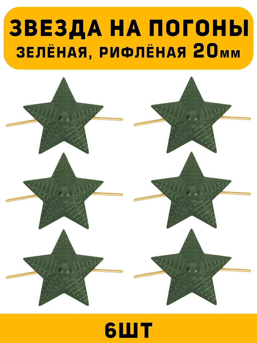 Звезда на погоны 6 шт размером 20 мм, это элемент специальной униформы которые используют для обозначение звания или отличия. Эти звезды, выполненные в зеленом цвете, придают форменной одежде официальный и стильный вид. Независимо от вашего звания — будь то лейтенант, капитан, старший лейтенант или прапорщик — звезда на погоне станет эффектным акцентом.