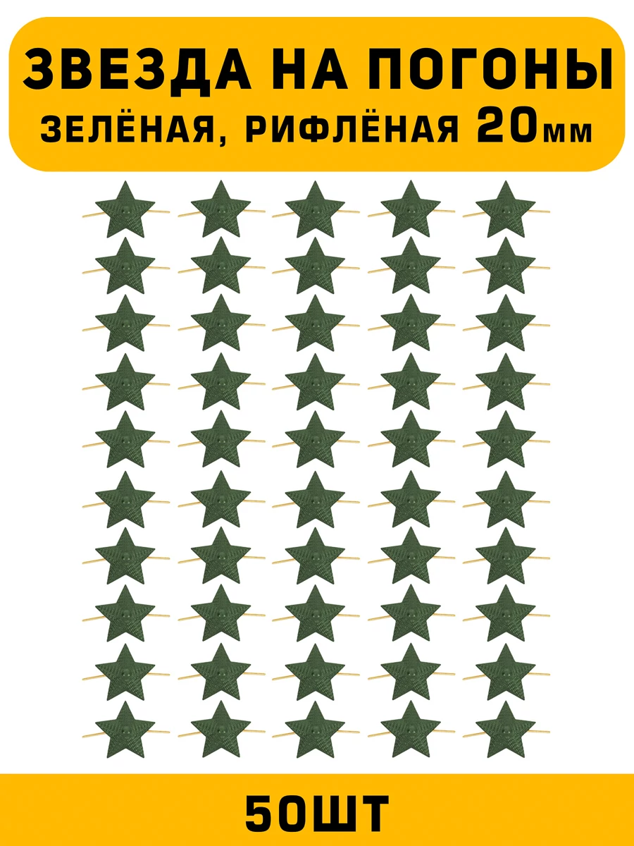 Звезда на погоны 50 шт размером 20 мм, это элемент специальной униформы которые используют для обозначение звания или отличия. Эти звезды, выполненные в зеленом цвете, придают форменной одежде официальный и стильный вид. Независимо от вашего звания — будь то лейтенант, капитан, старший лейтенант или прапорщик — звезда на погоне станет эффектным акцентом.