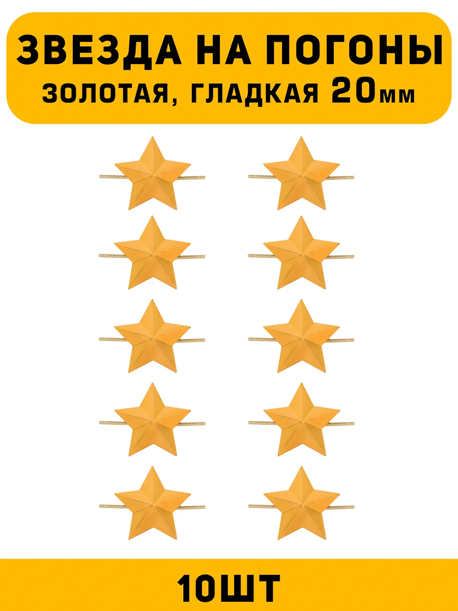 Звезда на погоны 10 шт размером 20 мм, это элемент специальной униформы которые используют для обозначение звания или отличия. Эти звезды, выполненные в золотом цвете, придают форменной одежде официальный и стильный вид. Независимо от вашего звания — будь то лейтенант, капитан, старший лейтенант или прапорщик — звезда на погоне станет эффектным акцентом.