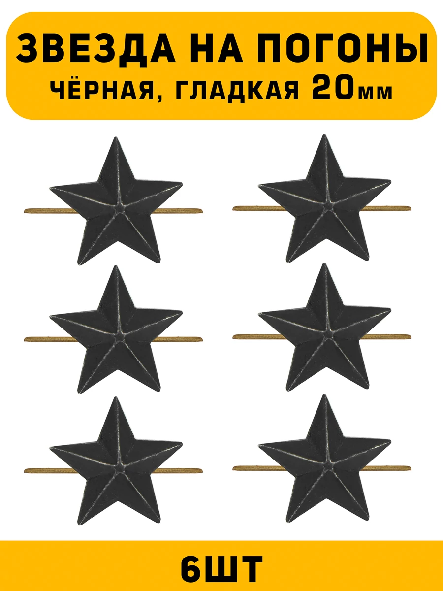 Звезда на погоны 6 шт размером 20 мм,это элемент специальной униформы которые используют для обозначение звания или отличия. Эти звезды, выполненные в черном цвете, придают форменной одежде официальный и стильный вид. Независимо от вашего звания — будь то лейтенант, капитан, старший лейтенант или прапорщик — звезда на погоне станет эффектным акцентом.