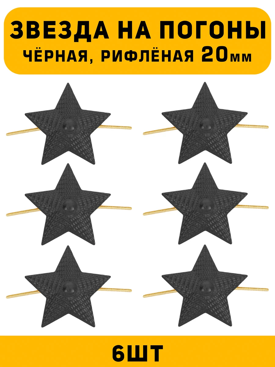 Звезда на погоны 6 шт размером 20 мм, это элемент специальной униформы которые используют для обозначение звания или отличия. Эти звезды, выполненные в черном цвете, придают форменной одежде официальный и стильный вид. Независимо от вашего звания — будь то лейтенант, капитан, старший лейтенант или прапорщик — звезда на погоне станет эффектным акцентом.