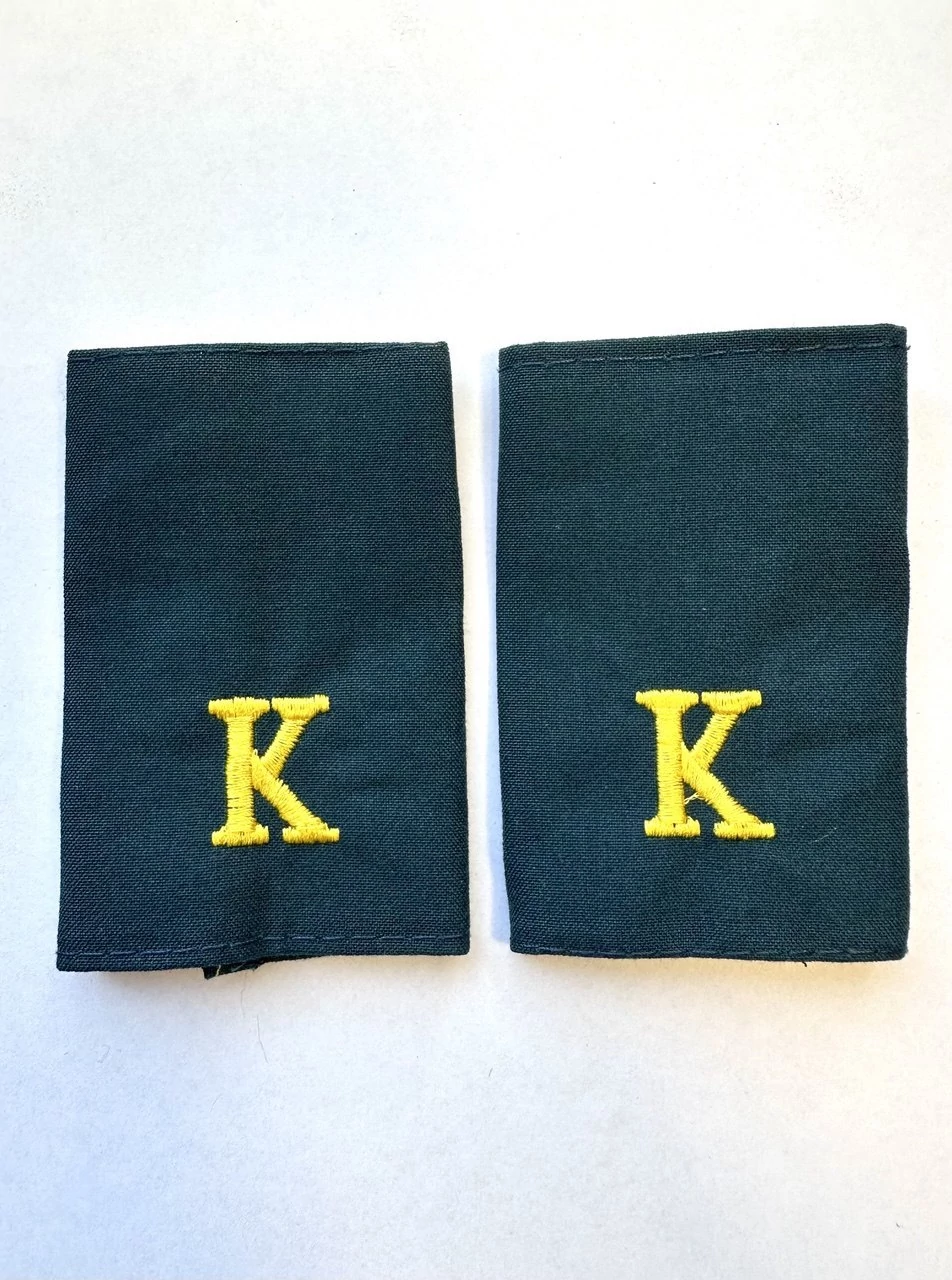 Характеристики фальш погон с буквам К: ткань твилл, вышивка желтыми нитками, фальш погоны муфта, цвет синий.
