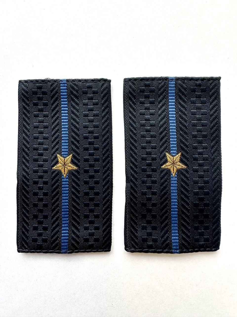 Фальш погоны Юстиции темно-синие с вышивкой звание Младший Лейтенант (реквизит). Размер 9х5см.