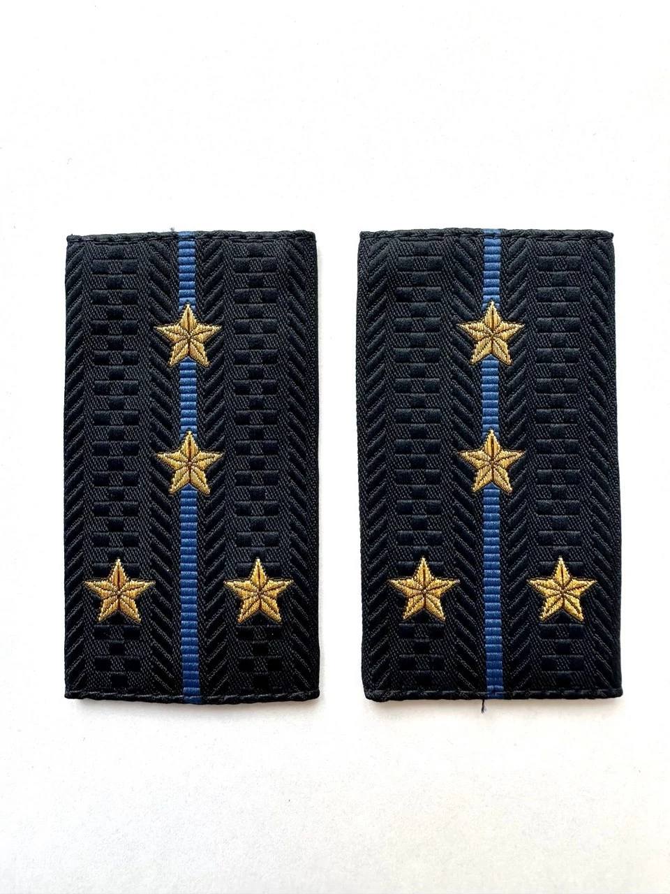 Фальш погоны Юстиции темно-синие с вышивкой звание Капитан (реквизит). Размер 9х5см.