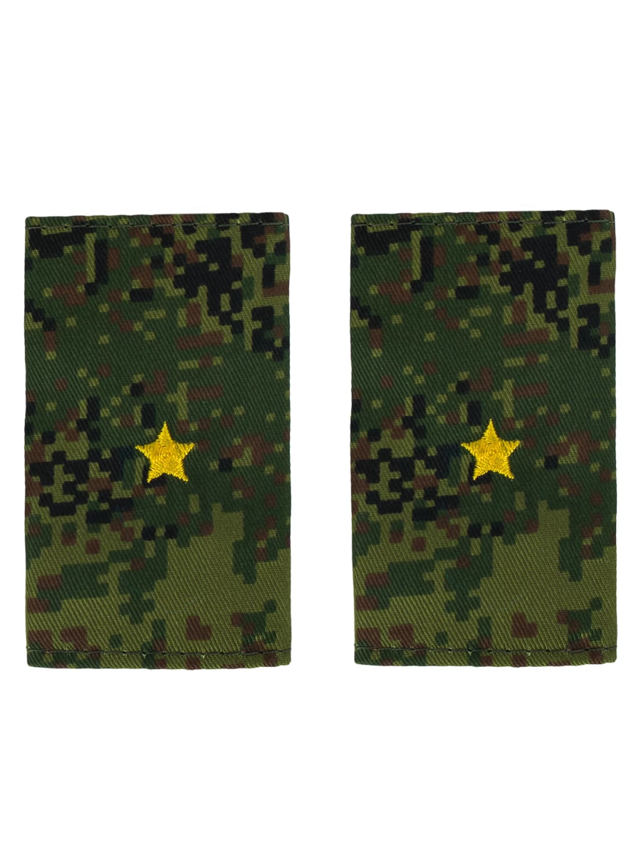 Фальш-погоны ВС РФ камуфляж Цифра 9х5 см звание Младший лейтенант. Фальш-погоны (муфта) с вышитыми звездами. Характеристики: Размер: 9х5 см. Материал: 100% полиэстер . Цвет: зеленый камуфляж цифра. Назначение: Для полевой формы Министерства Обороны; для военной кафедры. Сезон: Всесезонный.