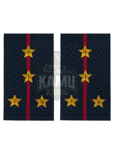 Фальш погоны МВД из темно-синей жаккардовой ткани с полосами и звездами, соответствующими званию Капитан, вышитыми прочными нитками темно-золотистого цвета. 100% полиэстер. Размеры 9 см на 5 см.