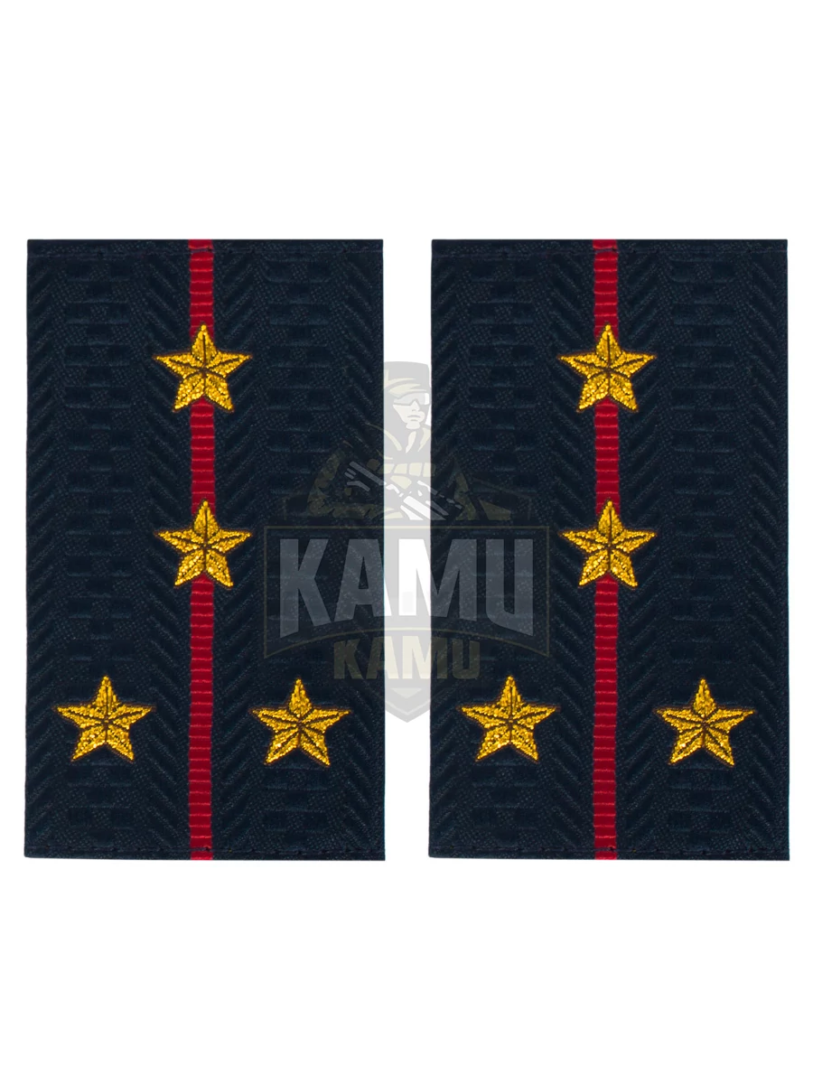 Фальш погоны МВД из темно-синей жаккардовой ткани с полосами и звездами, соответствующими званию Капитан, вышитыми прочными нитками темно-золотистого цвета. 100% полиэстер. Размеры 9 см на 5 см.