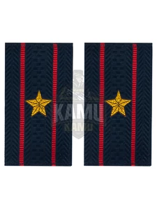 Фальш погоны МВД из темно-синей жаккардовой ткани с полосами и звездой, соответствующими званию Майор, вышитыми прочными нитками темно-золотистого цвета. 100% полиэстер. Размеры 9 см на 5 см.