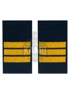 Фальш погоны МВД из темно-синей жаккардовой ткани с полосами, соответствующими званию Сержант, вышитыми прочными нитками темно-золотистого цвета. 100% полиэстер. Размеры 9 см на 5 см.
