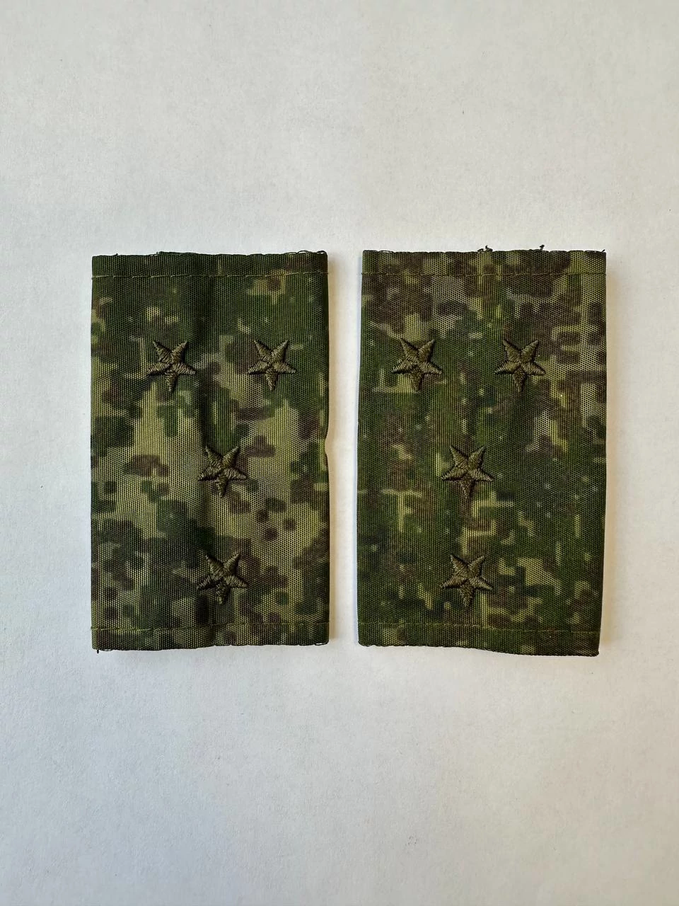 Фальш погоны камуфлированные цифра зеленая бушлат звание Капитан 8х5 см. Фальш-погоны (муфта) с вышитыми звездами. Характеристики: Размер: 8х5 см. Материал: 100% полиэстер. Цвет: зеленый камуфляж цифра. Назначение: Для полевой формы Министерства Обороны; для военной кафедры. Сезон: Всесезонный.