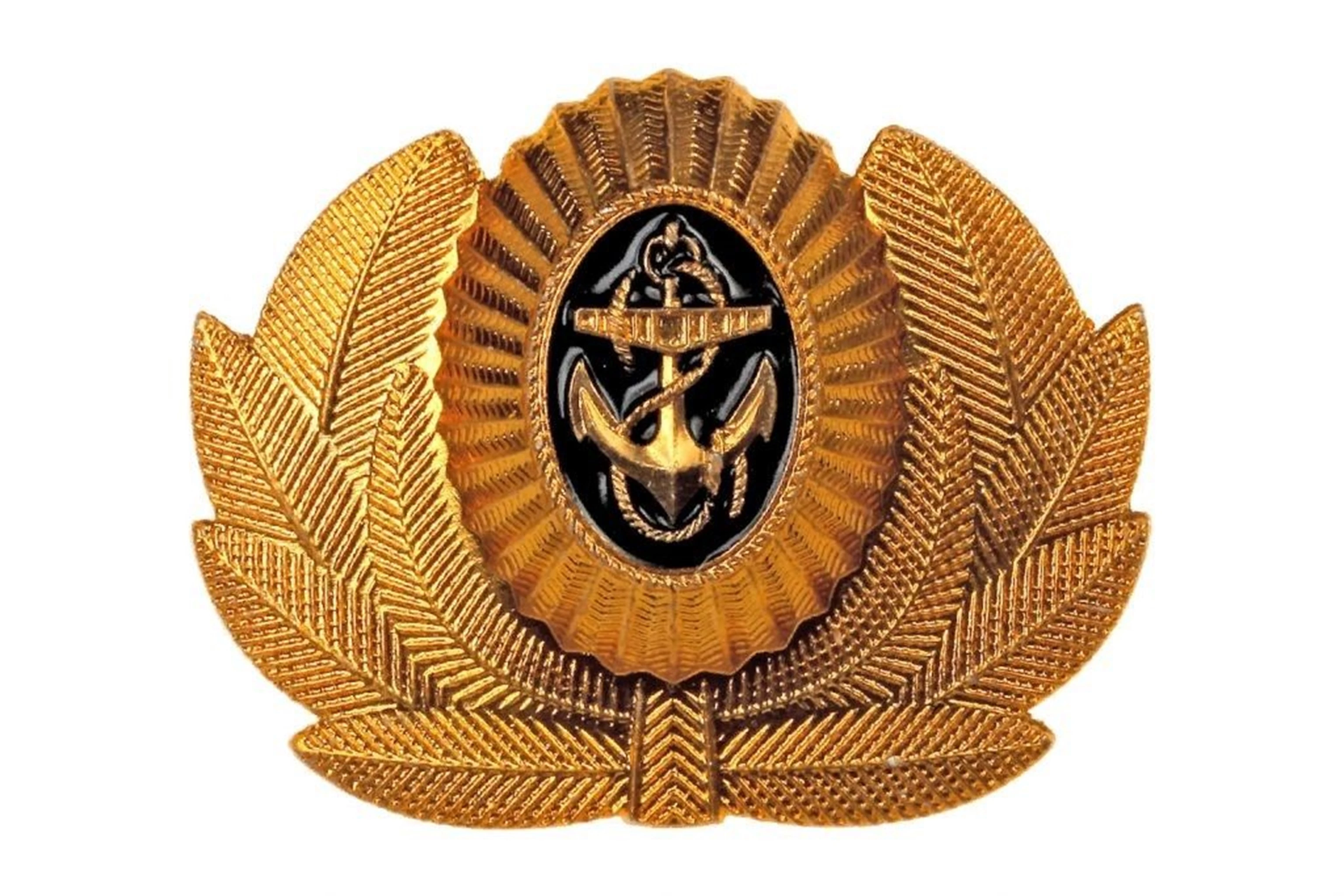 Кокарда Военно-морского флота предназначена для ношения на фуражках. Представляет собой овальный медальон черного цвета с изображением якоря в обрамлении золотистого венка. Данная модель выполнена из высококачественного металла с применением горячей эмали. Страна происхождения: Россия.