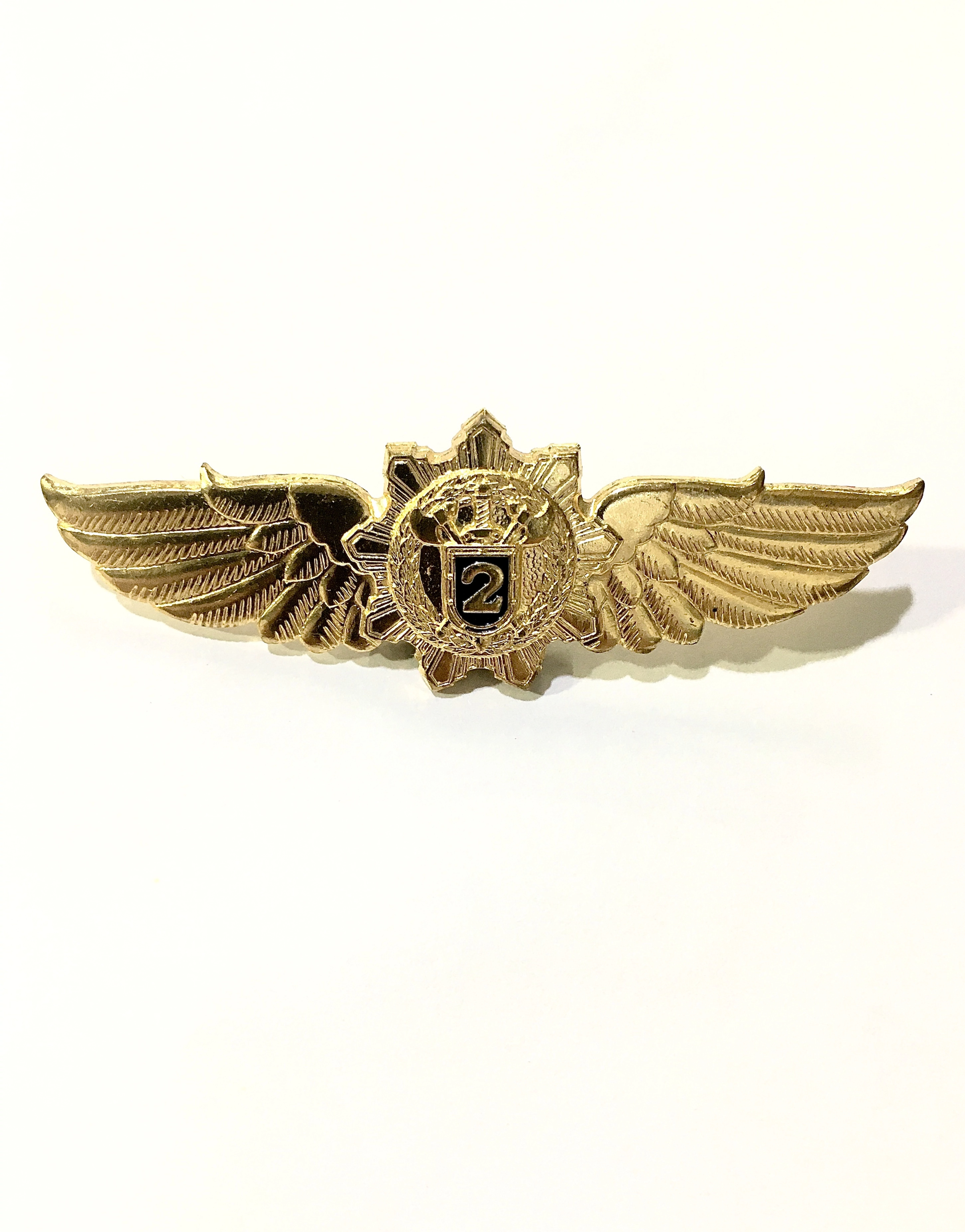 Нагрудный знак отличия ФСО выглядит как девятиконечная звезда с крыльями. На ней располагается золотистый медальон, окольцованный лавровым венком. Самой яркой деталью знака является щит василькового цвета с цифрой "2" обозначающей класс классификации. Для крепления предусмотрена закрутка. Данная модель выполнена из высококачественного металла с применением эмали. Размер: 2,3 см х 6,8 см.