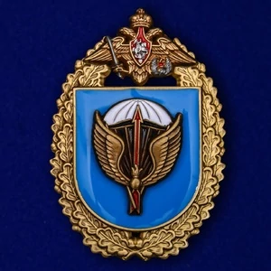 Высококачественный знак отличия в виде медальона золотого цвета с голубым щитом и эмблемой 76-ой гвардейской десантно-штурмовой дивизии ВДВ. Сверху размещён двуглавый орел.  Знак изготовлен по новой технологии из латуни с гальванической и эмалевым покрытием. Для крепления предусмотрен винт и гайка. Удостоверение идет в комплекте к знаку 31-я отдельная гвардейская десантно-штурмовая бригада для самостоятельного заполнения.