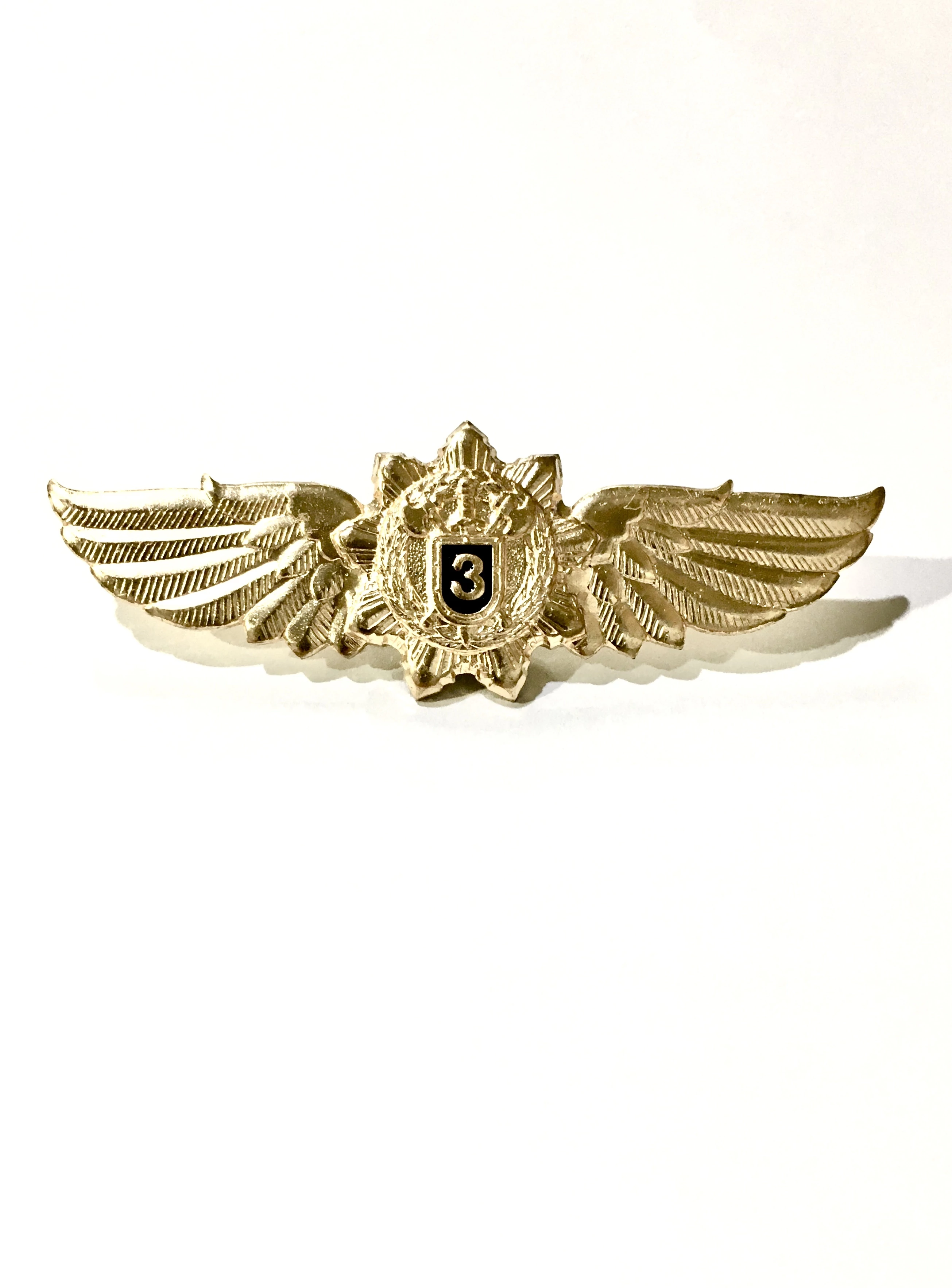 Нагрудный знак ФСО России выглядит как девятиконечная звезда с крыльями. На ней располагается золотистый медальон, окольцованный лавровым венком. Самой яркой деталью знака является щит синего цвета с цифрой "3" обозначающей классность. Знак крепится к одежде с помощью закрутки. Данная модель выполнена из высококачественного металла с применением эмали. Размер: 2,3 см х 6,8 см.