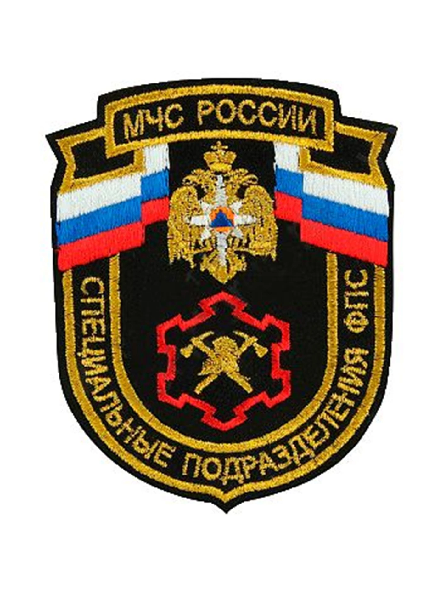Нашивка (шеврон вышитый) на рукав МЧС России Специальные подразделения ФПС черный