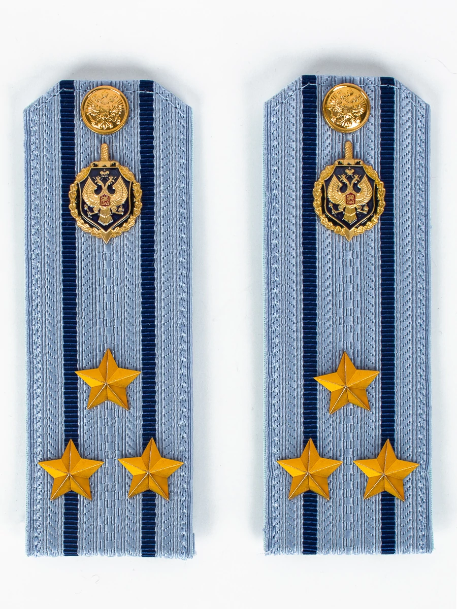 Погоны ФСБ голубые на рубашку, звание Полковник 14х5см картон