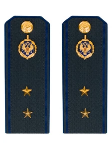 Размер 14 см на 5,5 см. Толщина 1 мм. Погоны ФСБ ткань жаккард темно-синего цвета с синим просветом на картонной основе. Погоны идут сразу в сборе с металлической фурнитурой из латуни и застежкой кляммером. При креплении жестких погон необходимо использовать застежку-кляймер. Необходимо продеть ленту погона в специальные петли на уставной форме.