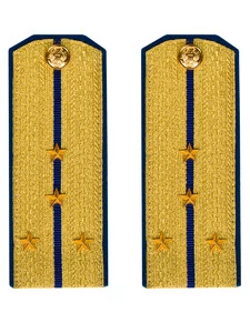 Погоны парадные  ФСБ золотые картон звание Капитан размер 14 см на 5,5 см. Толщина 1 мм. Погоны ФСБ ткань жаккард золотого цвета с синим просветом на картонной основе. Погоны идут сразу в сборе с металлической фурнитурой из латуни и застежкой кляммером. При креплении жестких погон необходимо использовать застежку-кляймер. Необходимо продеть ленту погона в специальные петли на уставной форме.