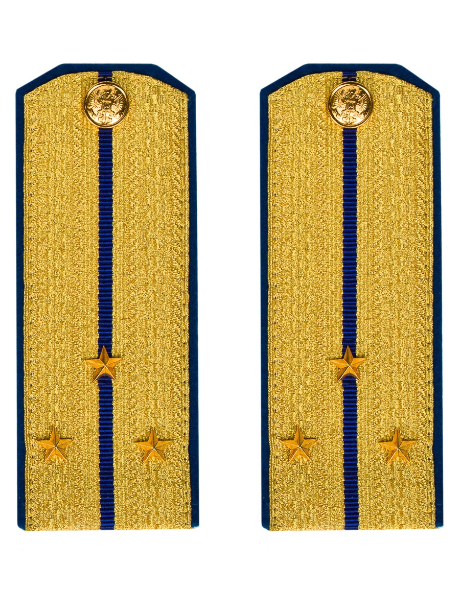 Погоны парадные ФСБ золотые картон звание Старший Лейтенант размер 14 см на 5,5 см. Толщина 1 мм. Погоны ФСБ ткань жаккард золотого цвета с синим просветом на картонной основе. Погоны идут сразу в сборе с металлической фурнитурой из латуни и застежкой кляммером. При креплении жестких погон необходимо использовать застежку-кляймер. Необходимо продеть ленту погона в специальные петли на уставной форме.