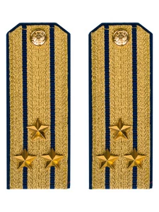 Погоны парадные ФСБ золотые картон звание Полковник размер 14 см на 5,5 см. Толщина 1 мм. Погоны ФСБ ткань жаккард золотого цвета с синим просветом на картонной основе. Погоны идут сразу в сборе с металлической фурнитурой из латуни и застежкой кляммером. При креплении жестких погон необходимо использовать застежку-кляймер. Необходимо продеть ленту погона в специальные петли на уставной форме.
