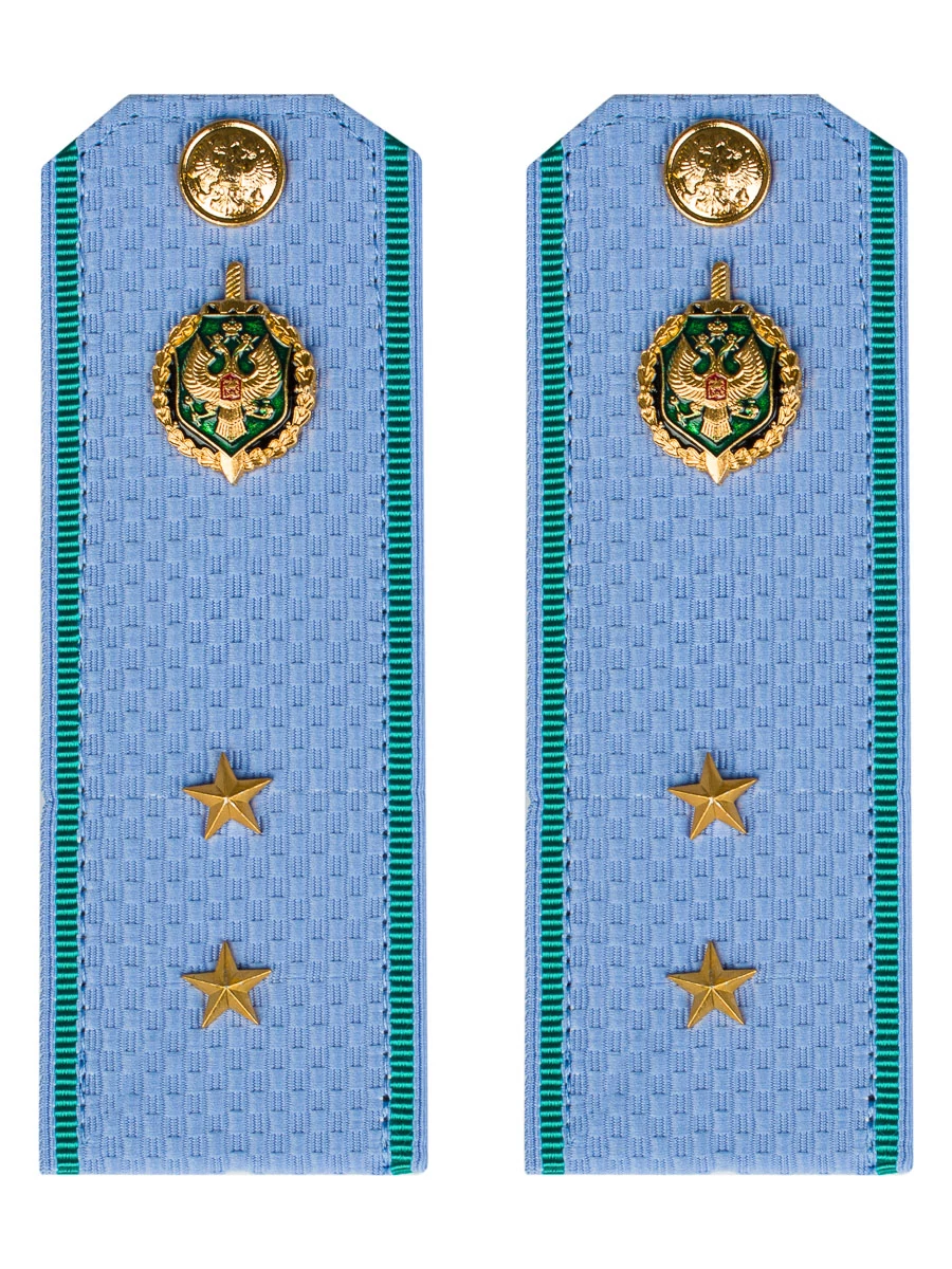 Погоны ПС ФСБ голубые картон звание Прапорщик, размер 14 см на 5,5 см. Толщина 1 мм. Погоны ПС ФСБ ткань жаккард голубова цвета с зелеными просветом на картонной основе. Погоны идут сразу в сборе с металлической фурнитурой из латуни и застежкой кляммером. При креплении жестких погон необходимо использовать застежку-кляймер. Необходимо продеть ленту погона в специальные петли на уставной форме.