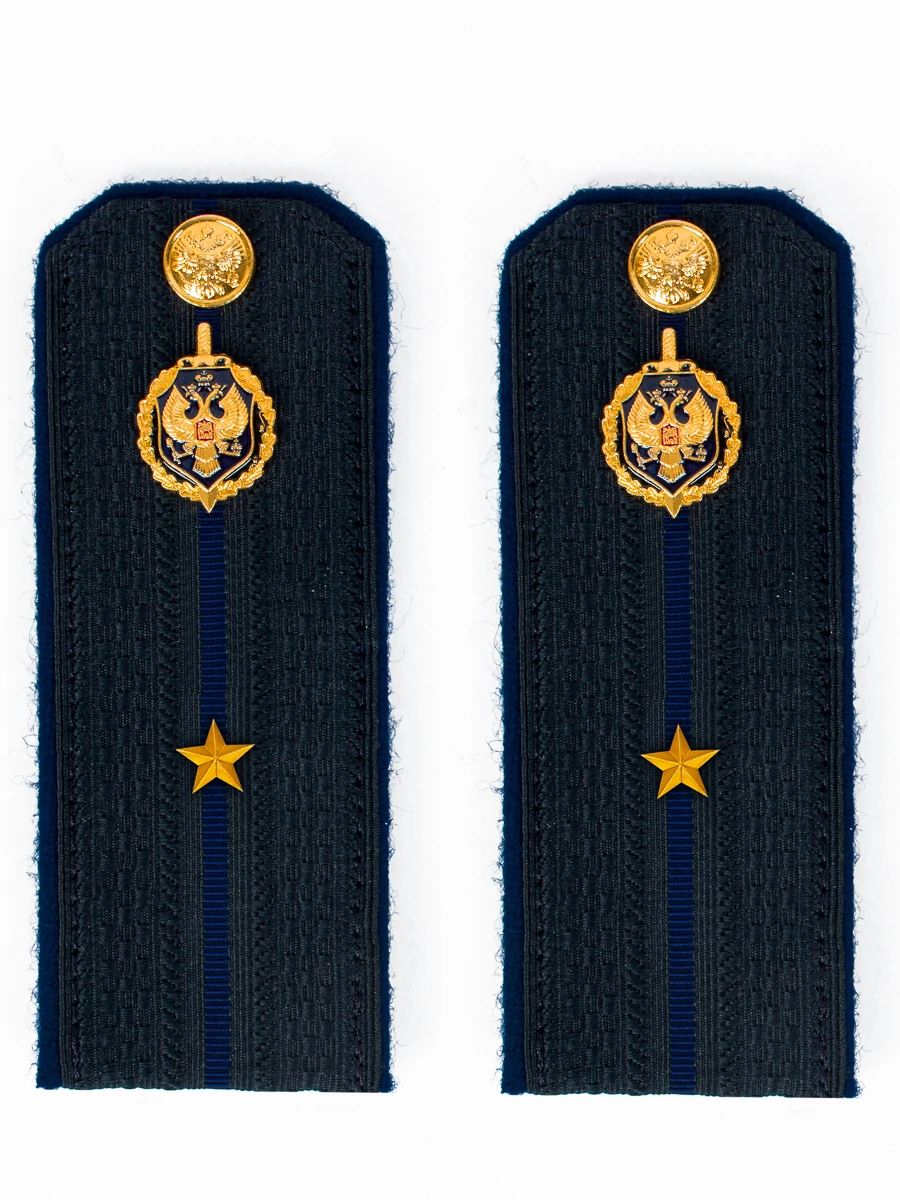 Погоны ФСБ на куртку цвет синий картон, звание Младший лейтенант 14х5,5см. Размер 14 см на 5,5 см. Толщина 1 мм. Погоны ФСБ ткань жаккард с синим просветом на картонной основе. Погоны идут сразу в сборе с металлической фурнитурой из латуни и застежкой кляммером. При креплении жестких погон необходимо использовать застежку-кляймер. Необходимо продеть ленту погона в специальные петли на уставной форме.