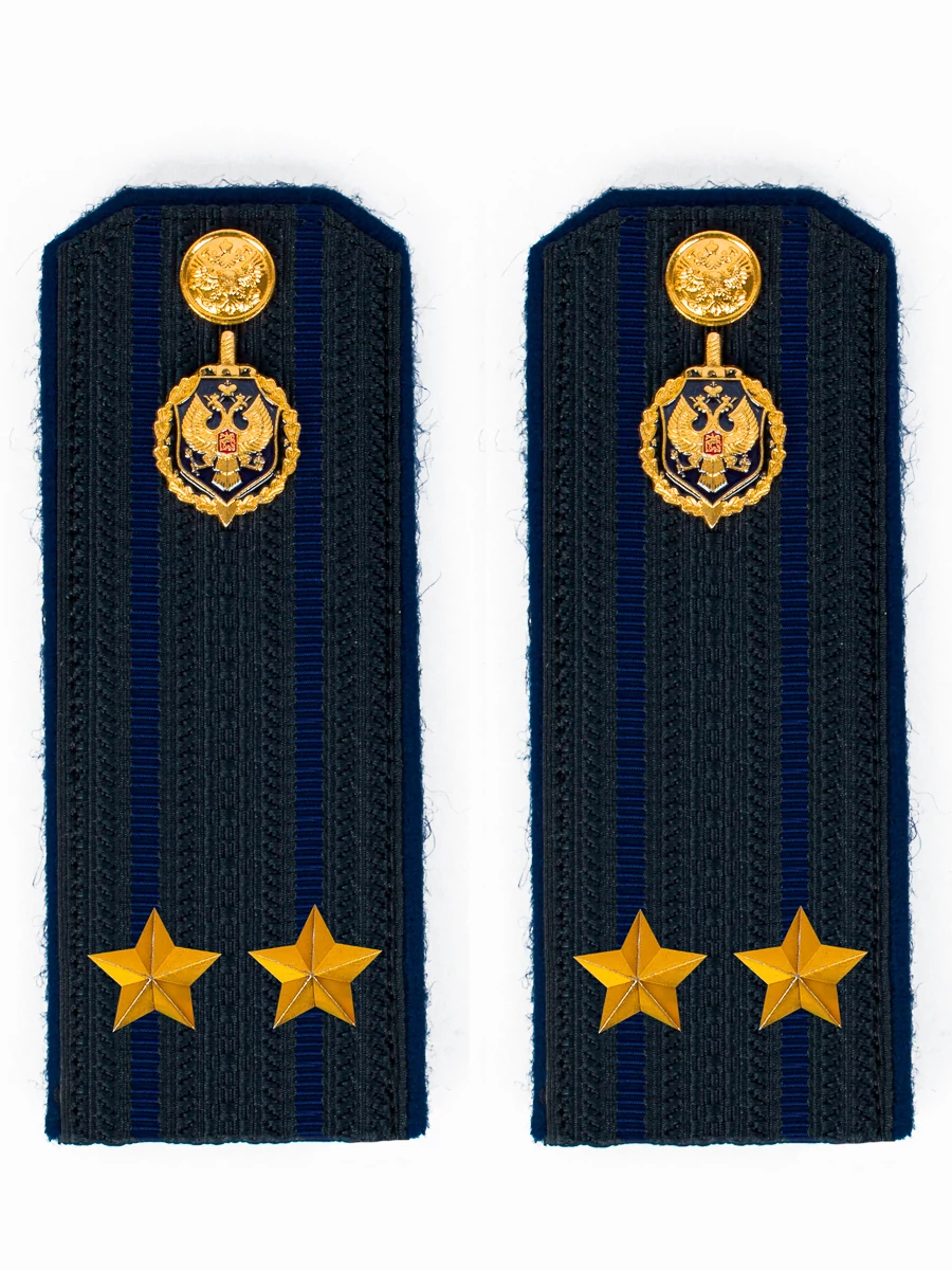 Размер 14 см на 5,5 см. Толщина 1 мм. Погоны ФСБ ткань жаккард с синим просветом на картонной основе. Погоны идут сразу в сборе с металлической фурнитурой из латуни и застежкой кляммером. При креплении жестких погон необходимо использовать застежку-кляймер. Необходимо продеть ленту погона в специальные петли на уставной форме.