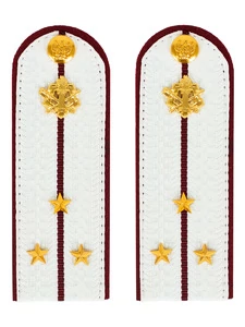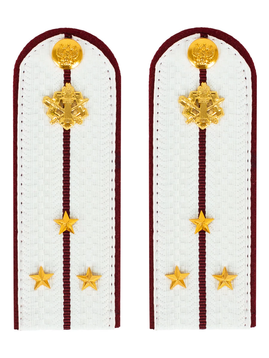 Размер 14 см на 5,5 см. Толщина 1 мм. Погоны ФСИН ткань жаккард белого цвета с краповым просветом на картонной основе. Погоны идут сразу в сборе с металлической фурнитурой из латуни и застежкой кляммером. При креплении жестких погон необходимо использовать застежку-кляймер. Необходимо продеть ленту погона в специальные петли на уставной форме.