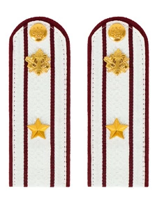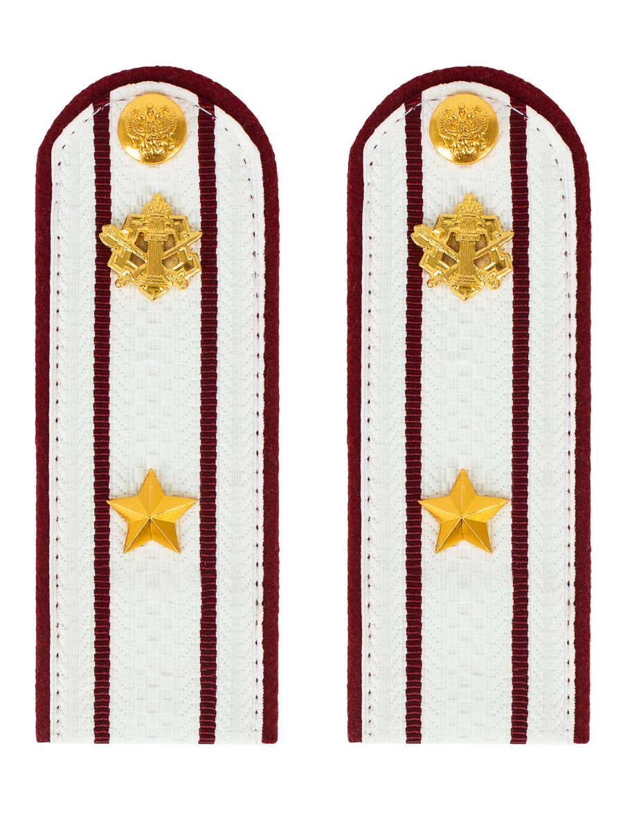 Размер 14 см на 5,5 см. Толщина 1 мм. Погоны ФСИН ткань жаккард белого цвета с краповым просветом на картонной основе. Погоны идут сразу в сборе с металлической фурнитурой из латуни и застежкой кляммером. При креплении жестких погон необходимо использовать застежку-кляймер. Необходимо продеть ленту погона в специальные петли на уставной форме.