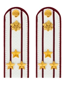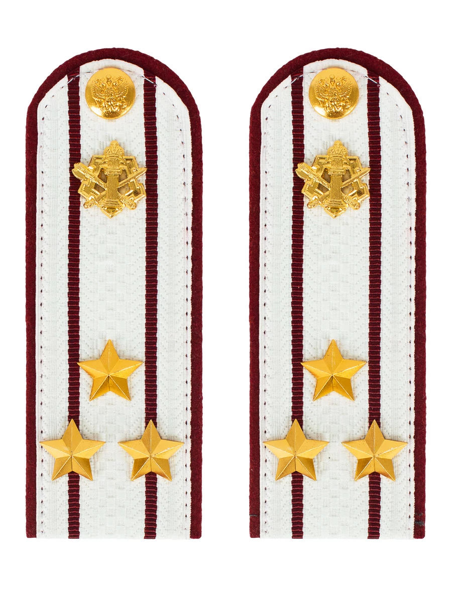 Размер 14 см на 5,5 см. Толщина 1 мм. Погоны ФСИН ткань жаккард белого цвета с краповым просветом на картонной основе. Погоны идут сразу в сборе с металлической фурнитурой из латуни и застежкой кляммером. При креплении жестких погон необходимо использовать застежку-кляймер. Необходимо продеть ленту погона в специальные петли на уставной форме.