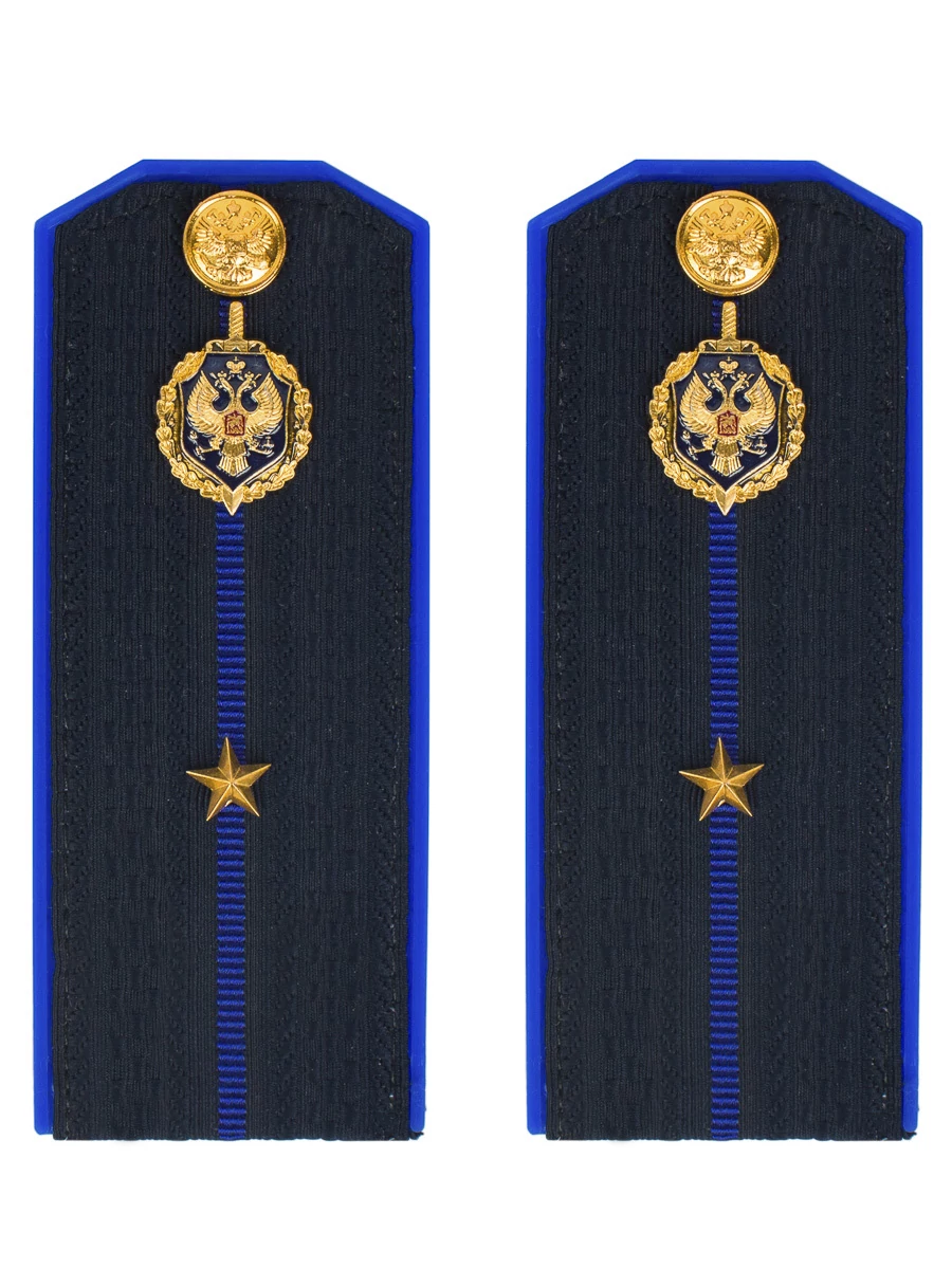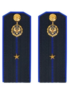 Размер 14 см на 5,5 см. Толщина 1 мм. Погоны ткань жаккард темно-синего цвета с зеленым просветом на пластиковой основе. Погоны идут сразу в сборе с металлической фурнитурой из латуни и застежкой кляммером. При креплении жестких погон необходимо использовать застежку-кляймер. Необходимо продеть ленту погона в специальные петли на уставной форме.