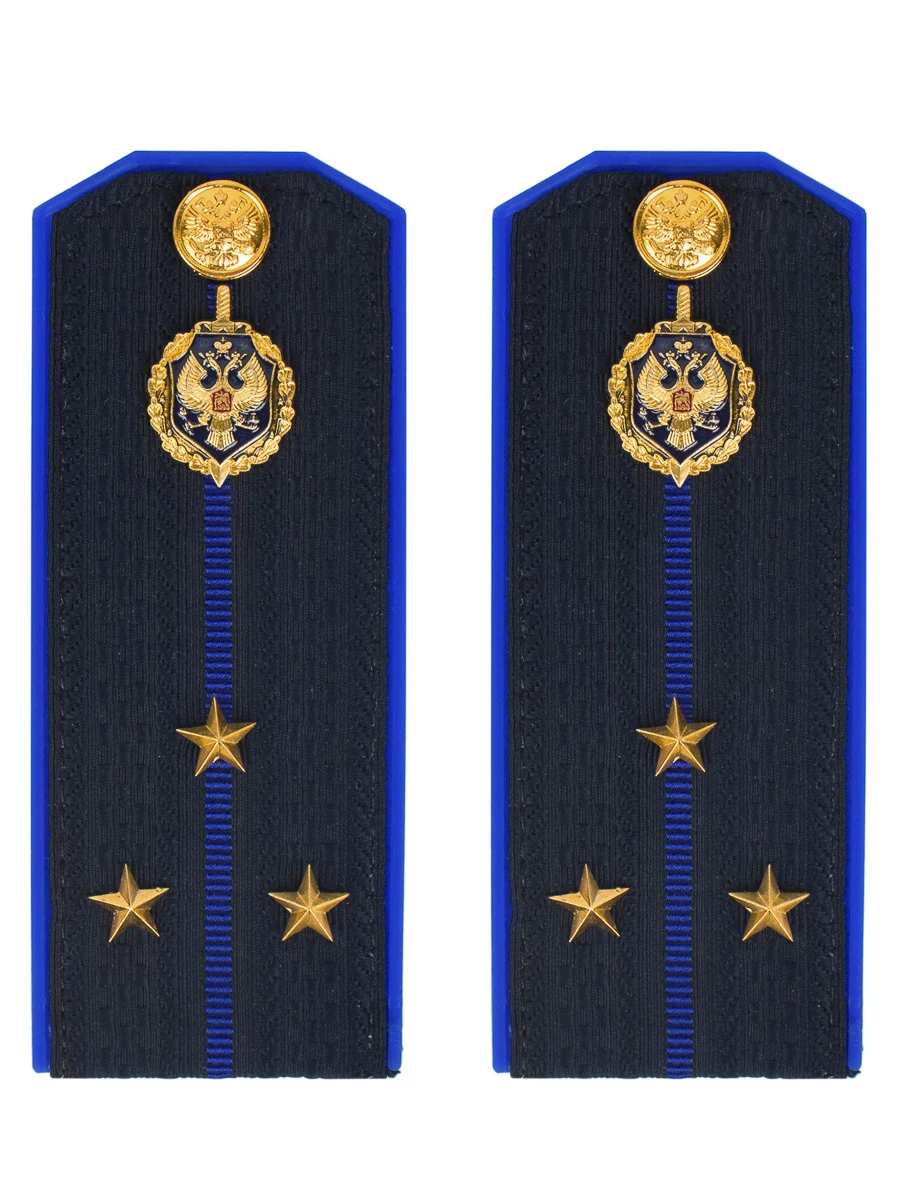 Размер 14 см на 5,5 см. Толщина 1 мм. Погоны ткань жаккард темно-синего цвета с зеленым просветом на пластиковой основе. Погоны идут сразу в сборе с металлической фурнитурой из латуни и застежкой кляммером. При креплении жестких погон необходимо использовать застежку-кляймер. Необходимо продеть ленту погона в специальные петли на уставной форме.