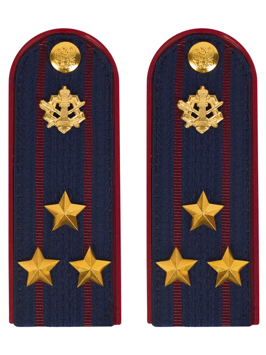 Размер 14 см на 5,5 см. Толщина 1 мм. Погоны ФСИН ткань жаккард темно-синего цвета с красным просветом на пластиковой основе. Погоны идут сразу в сборе с металлической фурнитурой из латуни и застежкой кляммером. При креплении жестких погон необходимо использовать застежку-кляймер. Необходимо продеть ленту погона в специальные петли на уставной форме.