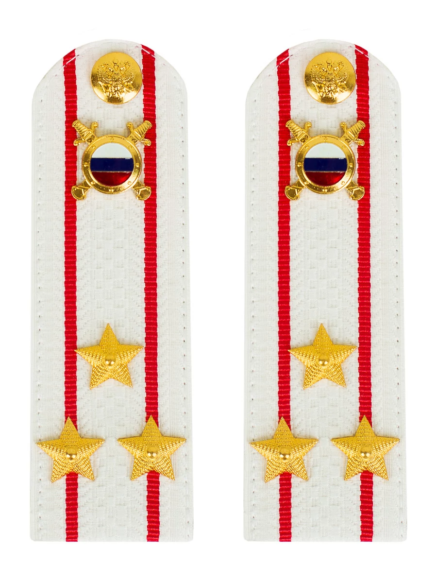 Размер 14 см на 5,5 см. Толщина 1 мм. Погоны МВД белые ткань жаккард белого цвета, основа картон. Погоны идут сразу в сборе с металлической фурнитурой из латуни и застежкой кляммером. При креплении жестких погон необходимо использовать застежку-кляймер. Необходимо продеть ленту погона в специальные петли на уставной форме.