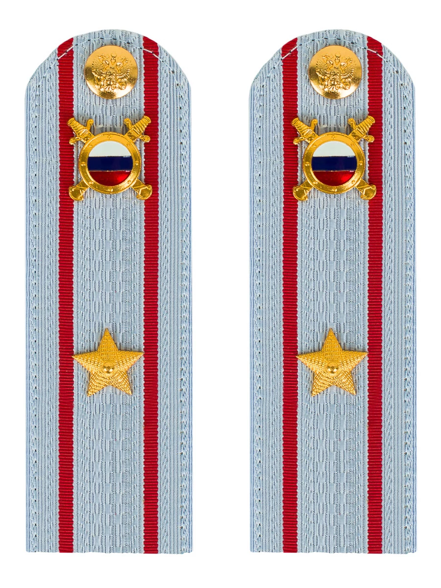 Размер 14 см на 5,5 см. Толщина 1 мм. Погоны МВД голубые ткань жаккард голубого цвета, основа картон. Погоны идут сразу в сборе с металлической фурнитурой из латуни и застежкой кляммером. При креплении жестких погон необходимо использовать застежку-кляймер. Необходимо продеть ленту погона в специальные петли на уставной форме.