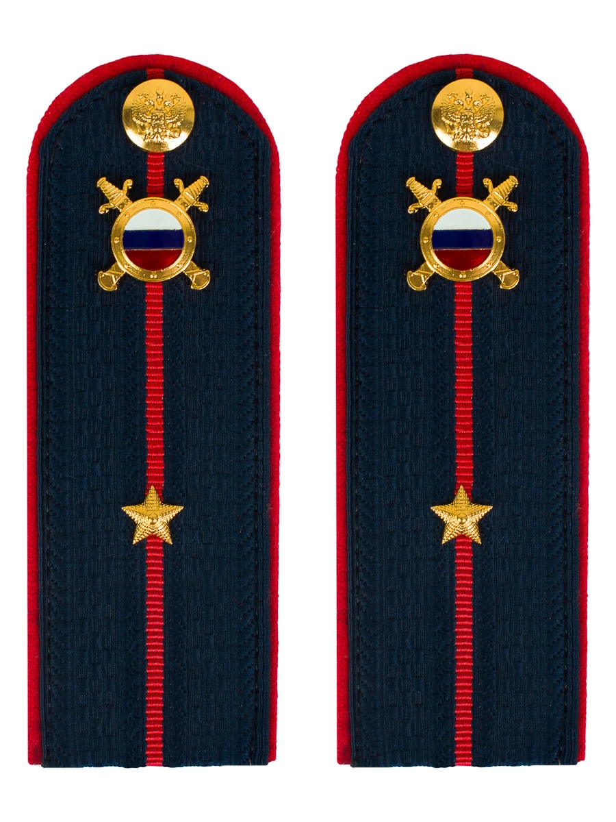 Размер 14 см на 5,5 см. Толщина 1 мм. Погоны МВД синие ткань жаккард темно-синего цвета, основа картон. Погоны идут сразу в сборе с металлической фурнитурой из латуни и застежкой кляммером. При креплении жестких погон необходимо использовать застежку-кляймер. Необходимо продеть ленту погона в специальные петли на уставной форме.