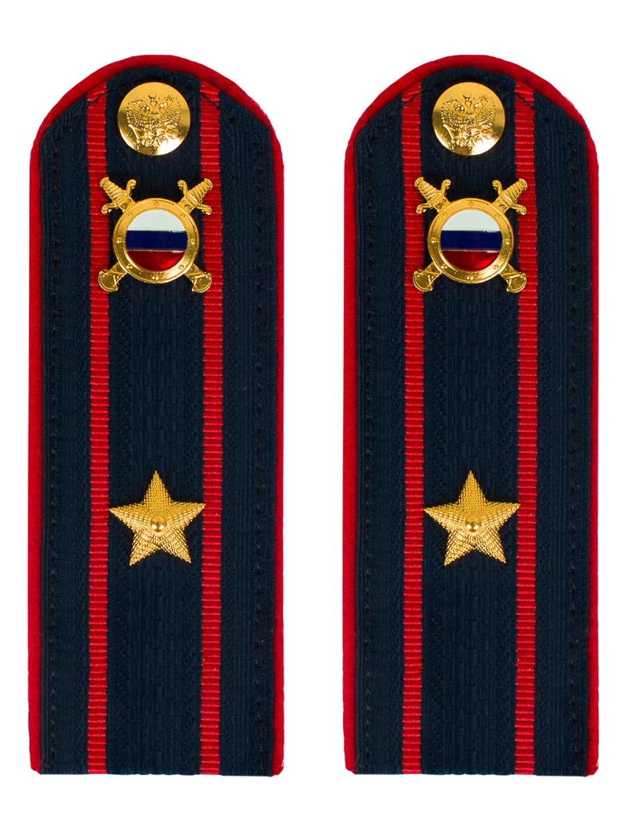 Размер 14 см на 5,5 см. Толщина 1 мм. Погоны МВД синие ткань жаккард темно-синего цвета, основа картон. Погоны идут сразу в сборе с металлической фурнитурой из латуни и застежкой кляммером. При креплении жестких погон необходимо использовать застежку-кляймер. Необходимо продеть ленту погона в специальные петли на уставной форме.