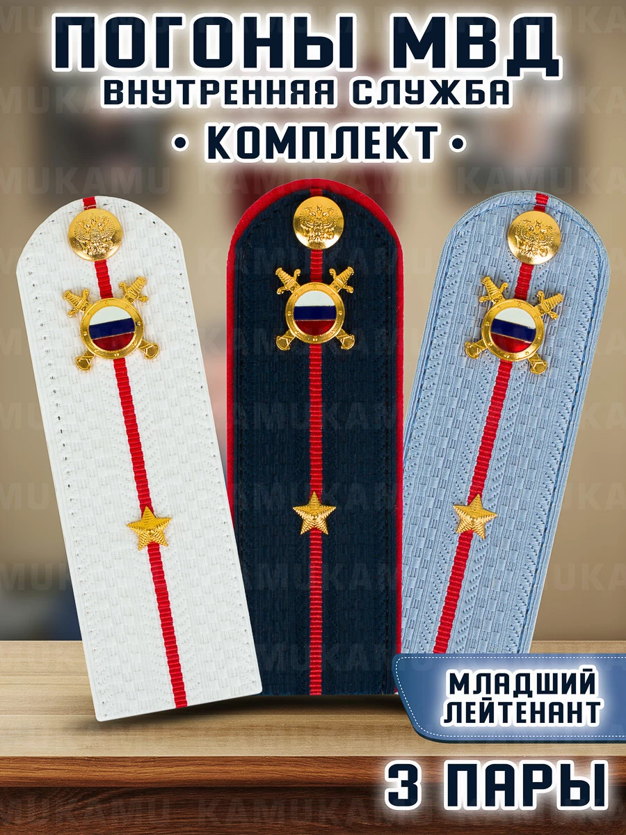 Погоны МВД внутренняя служба комплект 3 шт. картон звание Младший лейтенант
