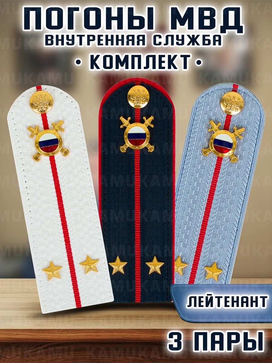 Погоны МВД внутренняя служба комплект 3 шт. картон звание Лейтенант