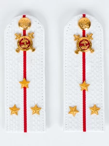 Размер 14 см на 5,5 см. Толщина 1 мм. Погоны МВД белые ткань жаккард белого цвета, основа пластик. Погоны идут сразу в сборе с металлической фурнитурой из латуни и застежкой кляммером. При креплении жестких погон необходимо использовать застежку-кляймер. Необходимо продеть ленту погона в специальные петли на уставной форме.