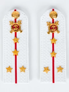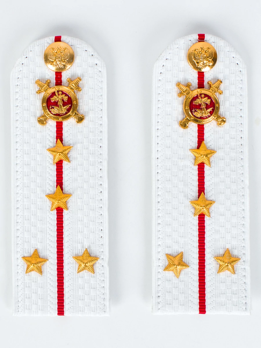 Размер 14 см на 5,5 см. Толщина 1 мм. Погоны МВД белые ткань жаккард белого цвета, основа пластик. Погоны идут сразу в сборе с металлической фурнитурой из латуни и застежкой кляммером. При креплении жестких погон необходимо использовать застежку-кляймер. Необходимо продеть ленту погона в специальные петли на уставной форме.