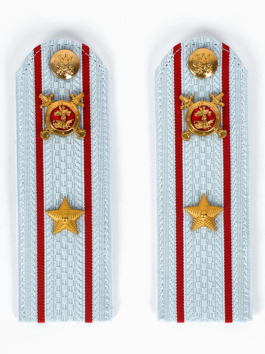 Размер 14 см на 5,5 см. Толщина 1 мм. Погоны МВД белые ткань жаккард белого цвета, основа пластик. Погоны идут сразу в сборе с металлической фурнитурой из латуни и застежкой кляммером. При креплении жестких погон необходимо использовать застежку-кляймер. Необходимо продеть ленту погона в специальные петли на уставной форме.