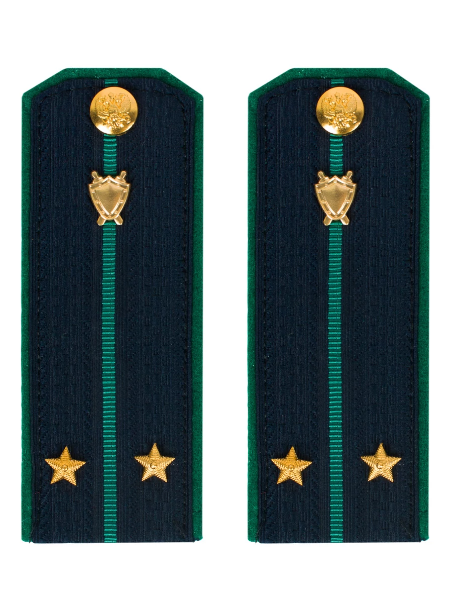 Размер 14 см на 5,5 см. Толщина 1 мм. Погоны Прокуратура синие ткань жаккард темно-синего цвета, основа картон. Погоны идут сразу в сборе с металлической фурнитурой из латуни и застежкой кляммером. При креплении жестких погон необходимо использовать застежку-кляймер. Необходимо продеть ленту погона в специальные петли на уставной форме.