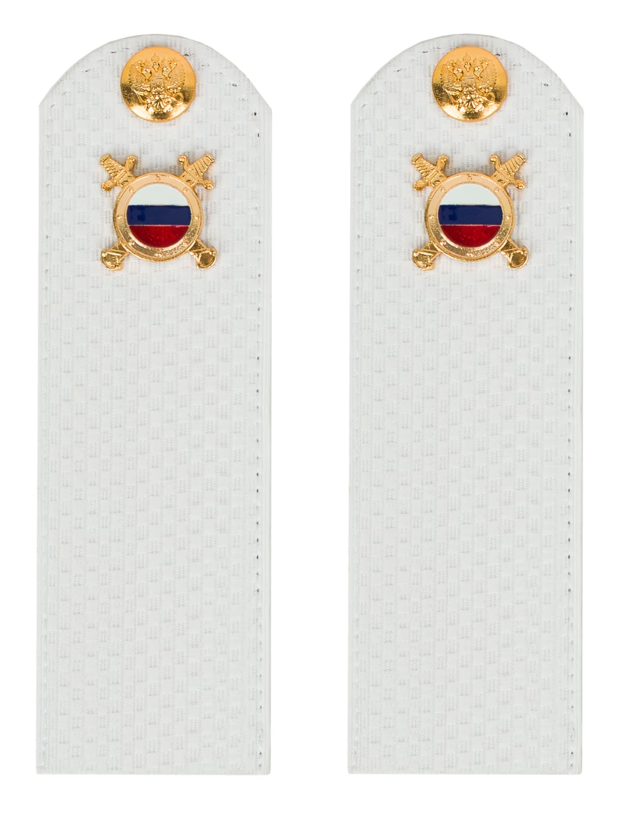 Размер 14 см на 5,5 см. Толщина 1 мм. Погоны МВД белые ткань жаккард белого цвета, основа картон. Погоны идут сразу в сборе с металлической фурнитурой из латуни и застежкой кляммером. При креплении жестких погон необходимо использовать застежку-кляймер. Необходимо продеть ленту погона в специальные петли на уставной форме.