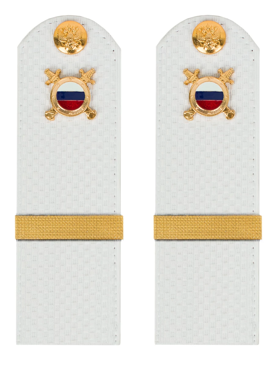 Размер 14 см на 5,5 см. Толщина 1 мм. Погоны МВД белые ткань жаккард белого цвета, основа картон. Погоны идут сразу в сборе с металлической фурнитурой из латуни и застежкой кляммером. При креплении жестких погон необходимо использовать застежку-кляймер. Необходимо продеть ленту погона в специальные петли на уставной форме.