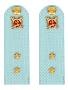 Размер 14 см на 5,5 см. Толщина 1 мм. Погоны МВД ткань жаккард голубого цвета, основа пластик. Погоны идут сразу в сборе с металлической фурнитурой из латуни и застежкой кляммером. При креплении жестких погон необходимо использовать застежку-кляймер. Необходимо продеть ленту погона в специальные петли на уставной форме.