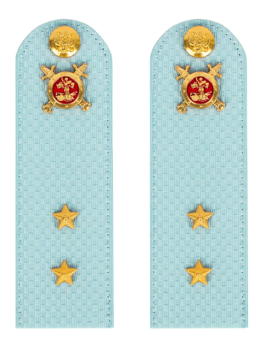 Размер 14 см на 5,5 см. Толщина 1 мм. Погоны МВД ткань жаккард голубого цвета, основа пластик. Погоны идут сразу в сборе с металлической фурнитурой из латуни и застежкой кляммером. При креплении жестких погон необходимо использовать застежку-кляймер. Необходимо продеть ленту погона в специальные петли на уставной форме.